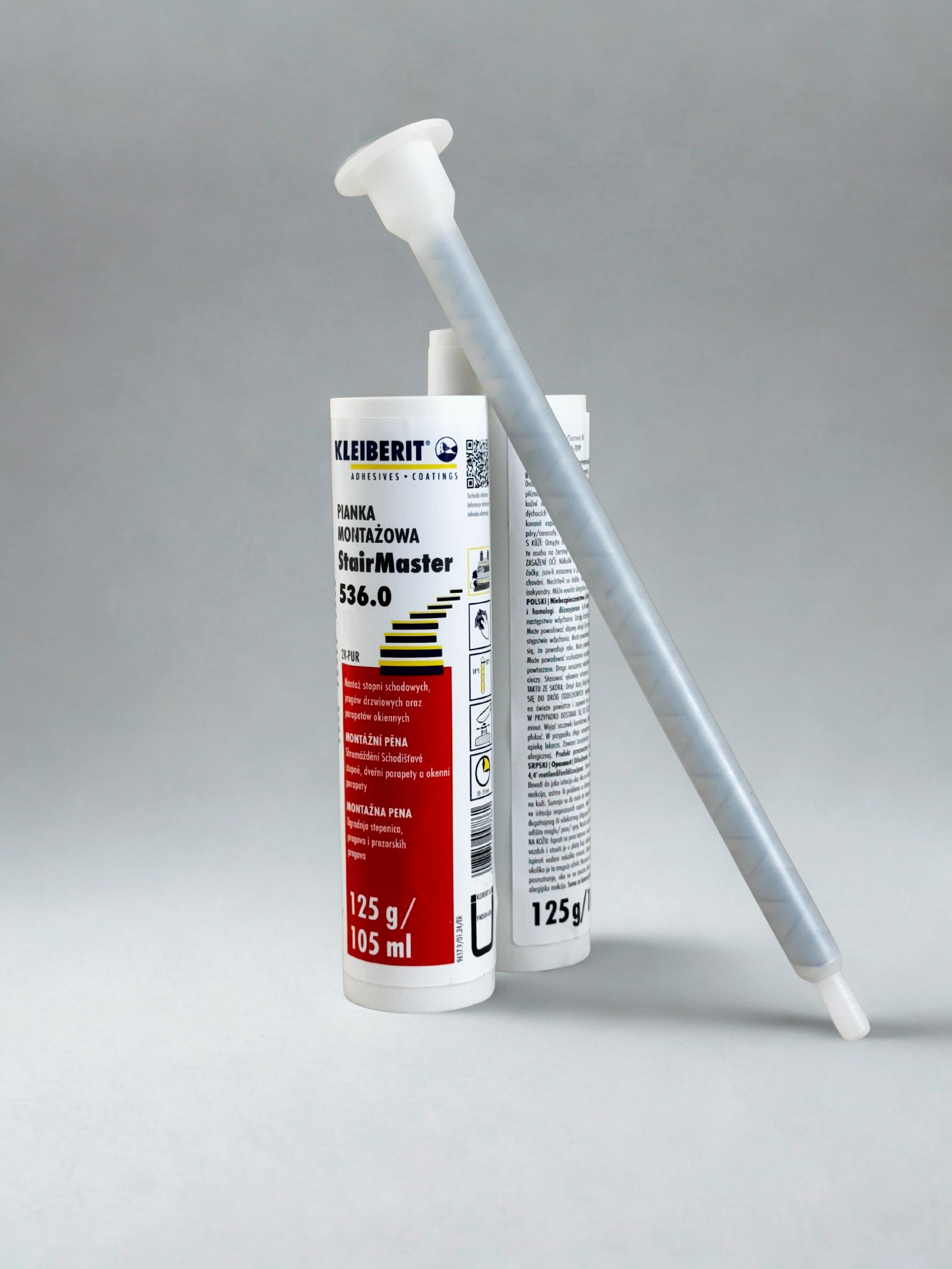 KLEIBERIT 536 STAIR MASTER to dwuskładnikowy, ekspansywny klej poliuretanowy (2K PUR) przeznaczony do trwałego montażu stopni schodów, podstopnic, progów drzwiowych oraz parapetów okiennych. Doskonale sprawdza się w klejeniu drewna, materiałów drewnopochodnych, kamienia, metalu, linoleum i wykładzin PCV. Szczególnie polecany do zastosowań wymagających wysokiej odporności mechanicznej i estetycznego wykończenia bez widocznych połączeń.